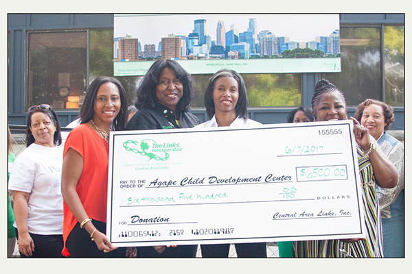 As part of the 2017 Central Area Conference of The Links, Incorporated, members donated educational materials and presented a donation to support the continued transformational impact of the Agape Child Development Center in the Minneapolis and St. Paul communities. Agape Child Development Center created Minnesota’s first 24-hour childcare facility that addresses the needs of families. “They are nurtured to move beyond crisis to restoration, and then on to empowerment,” said Glenda Masingale Manson, Central Area Director.