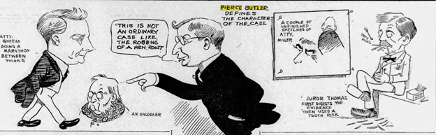 After six years at the Omaha, Butler went back into private practice, in the firm that would be one of St. Paul’s leading firms for the rest of the twentieth century, later called Doherty Rumble and Butler. Here, Pierce Butler earned a reputation as one of the most effective and sought-after trial lawyers in the Upper Midwest: “the dagger,” indeed. He went where the money was, yes, but also had the freedom to take the cases that interested him most.